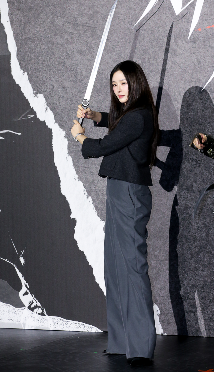 배우 박규영이 25일 서울 롯데시네마 건대입구점에서 진행된 넷플릭스 영화 '사마귀' 제작보고회 일정에 참석했다.