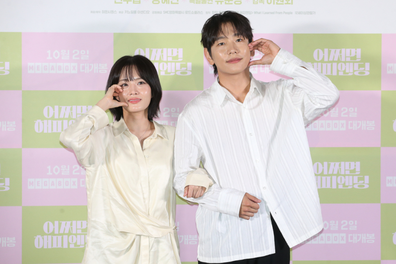 배우 강혜인, 신주협이 30일 서울 성동구 메가박스 성수에서 진행된 '어쩌면 해피엔딩' 언론 시사회 일정에 참석했다.