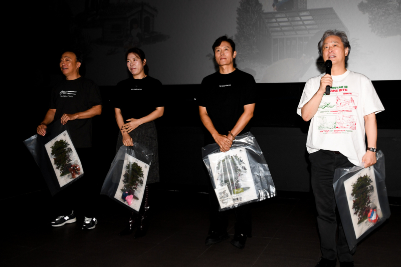배우 이성민, 염혜란, 이병헌, 박찬욱 감독이 1일 서울 영등포구 롯데 시네마 영등포점에서 진행된 영화 '어쩔수가없다' 무대인사 일정에 참석했다.