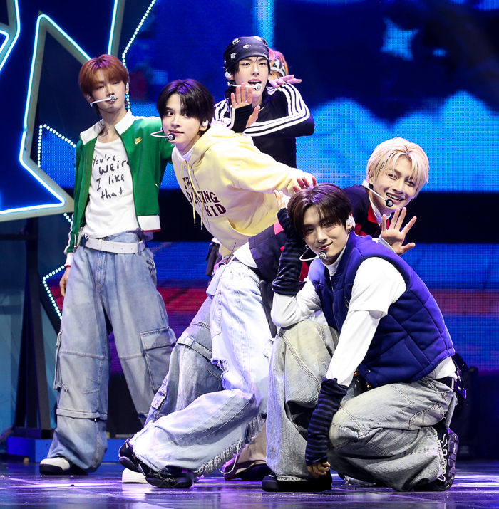 그룹 투어스(TWS/ 신유, 도훈, 영재, 한진, 지훈, 경민)가 13일 서울 광진구 예스24라이브홀에서 진행된 미니 4집 ‘play hard’ 쇼케이스 일정에 참석했다.